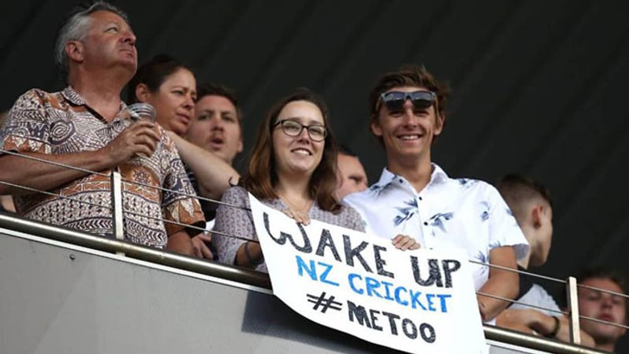 ന്യൂസിലന്ഡ് ക്രിക്കറ്റിലും 'മീ ടു' ആരോപണം. ന്യൂസിലന്ഡ്- ഇന്ത്യ ട്വന്റി20 പരമ്പരയ്ക്കിടെയാണ് പോസ്റ്ററുകള് ഉയര്ന്നത്. ആദ്യ ടി20 നടന്ന വെല്ലിങ്ടണിലെ വെസ്റ്റ്പാക്ക് സ്റ്റേഡിയത്തിന് പിന്നാലെ രണ്ടാം ടി20 നടന്ന ഓക്ലന്ഡിലെ സ്റ്റേഡിയത്തിലും സമാനരീതിയിലുള്ള പോസ്റ്ററുകള് ഉയര്ന്നു.