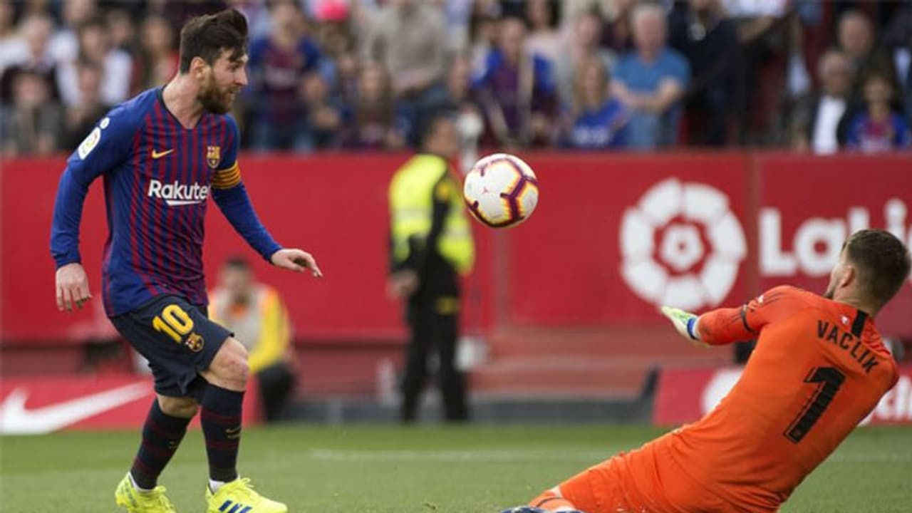 22ാം മിനിറ്റില് ജീസസ് നവാസിന്റെ ഗോളിലൂടെ സെവിയ്യ മുന്നിലെത്തി. എന്നാല് നാല് മിനിറ്റുകള്ക്കകം മെസിയിലൂടെ ബാഴ്സ തിരിച്ചടിച്ചു. ഇവാന് റാകിടിച്ചിന്റെ പാസ് ഒരു വോളിയിലൂടെ മെസി വലയില് പതിപ്പിച്ചു. 42ാം മിനിറ്റില് ഗബ്രിയേല് മെര്ക്കാഡോയിലൂടെ സെവിയ്യ വീണ്ടും മുന്നിലെത്തി. എന്നാല് രണ്ടാം പകുതിക്ക് ശേഷം മെസി വീണ്ടും ഒപ്പമെത്തിച്ചു. ഡെംബെലയുടെ പാസ് സ്വീകരിച്ച മെസിയുടെ വലങ്കാലന് ഷോട്ട് ഗോള് കീപ്പറെ കീഴടക്കി.