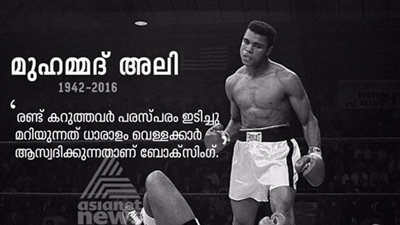 ലോക കായിക ചരിത്രത്തില് പകരക്കാരനില്ലാത്ത ഇതിഹാസം വിടവാങ്ങിയിരിക്കുന്നു. റിങ്ങിനകത്തും പുറത്തും ഒരുപോലെ പോരാടിയ മുഹമ്മദലിയുടെ പ്രശസ്തമായ വാചകങ്ങള്. വീഡിയോ കാണാം.