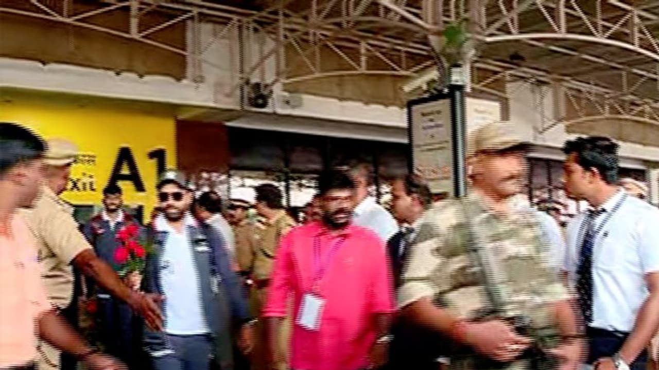 ആരാധകരുടെ ആര്പ്പുവിളികള്ക്കിടയിലാണ് താരങ്ങളും പരിശീലകരും തിരുവനന്തപുരം വിമാനത്താവളത്തില് എത്തിയത്. മുംബയിലെ തകര്പ്പൻ വിജയത്തിനു ശേഷം എത്തിയ താരങ്ങളെ ഒരോരുത്തെരെയും പേരെടുത്ത് ആരാധകര് ജെയ് വിളിക്കുകയായിരുന്നു. വിമാനത്താവളത്തില് എത്തിയ ഓരോ താരത്തിനും റോസാപ്പൂവ് നല്കിയായിരുന്നു സ്വീകരിച്ചത്. കഴിഞ്ഞ മത്സരത്തില് 162 റണ്സ് എടുത്ത രോഹിത് ശര്മ്മ തനിക്ക് ലഭിച്ച പൂവ് പൊലീസ് ഉദ്യോഗസ്ഥന് കൈമാറിയതും ആരാധകരില് കൌതുകമുണ്ടാക്കി. രണ്ട് ബസ്സുകളിലായാണ് താരങ്ങളെ താമസസ്ഥലത്തേയ്ക്ക് കൊണ്ടുപോയത്.