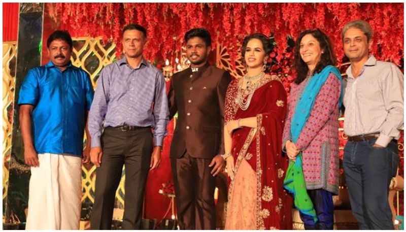 വിവാഹസല്ക്കാരത്തില് മുഖ്യമന്ത്രി പിണറായി വിജയന് പങ്കെടുത്തു. ഇന്ത്യന് എ ടീമിലും ഐപിഎല്ലില് രാജസ്ഥാന് റോയല്സിലും സഞ്ജുവിന്റെ ഗുരുവായിരുന്ന ക്രിക്കറ്റ് ഇതിഹാസം രാഹുല് ദ്രാവിഡ് കുടംബസമേതമാണെത്തിയത്. വിഎം സുധീരൻ അടക്കമുള്ള രാഷ്ട്രീയരംഗത്തെ പ്രമുഖരും ആശംസകള് കൈമാറാനെത്തി.