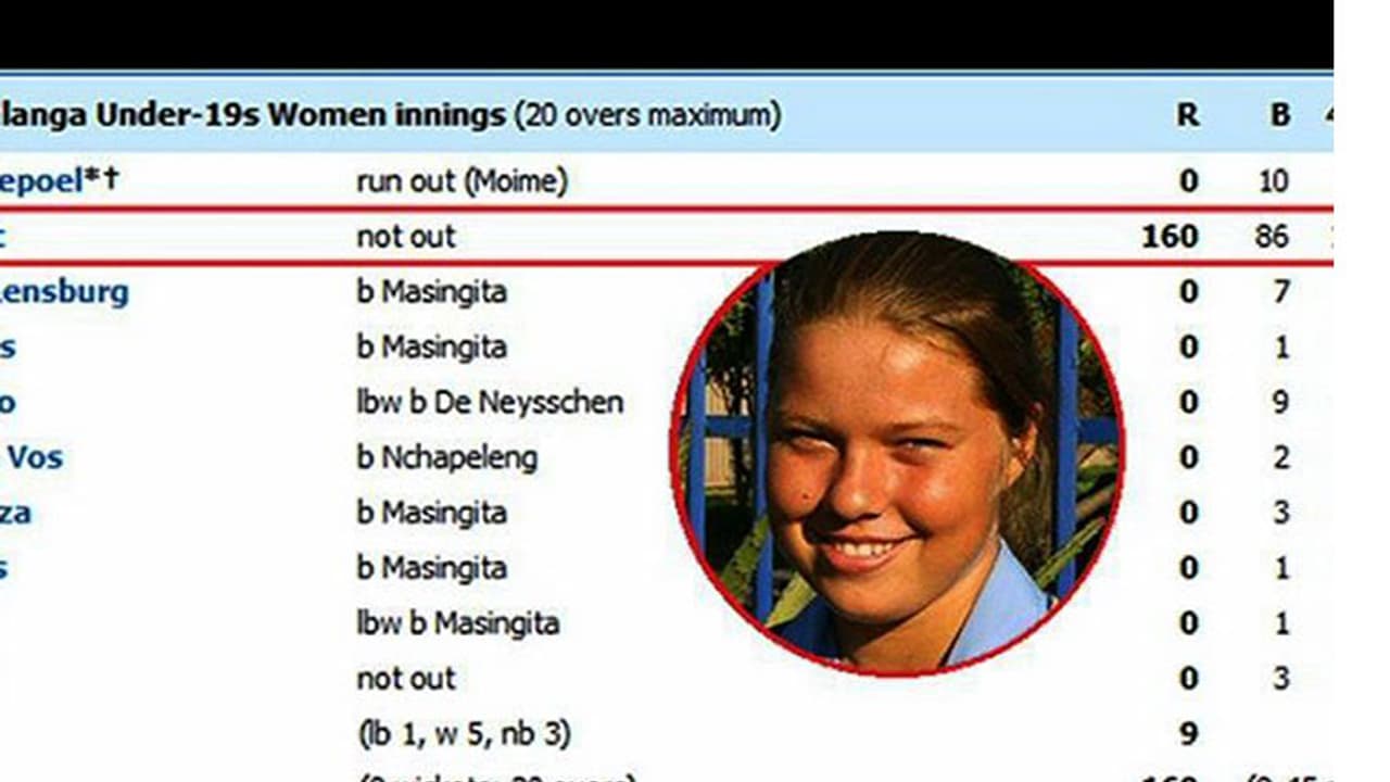 എംപുമലാംഗ- ഈസ്റ്റേണ്സ് മത്സരം. ആദ്യം ബാറ്റ് ചെയ്ത എംപുമലാംഗ ടീമിനായി ഓപ്പണറായി ഇറങ്ങിയതാണ് ഷാനിയ ലീ സ്വാര്ട്ട്. 20 ഓവറും ക്രീസില്നിന്ന ഷാനിയ അടിച്ചുകൂട്ടിയത് 80 പന്തില്160 റണ്സ്. മറ്റ് എല്ലാ ബാറ്റ്സ്മാന്മാരും പൂജ്യത്തിന് പുറത്ത്. 9 എക്സ്ട്രാ കൂടി ചേര്ന്നപ്പോള്ടീം 169.