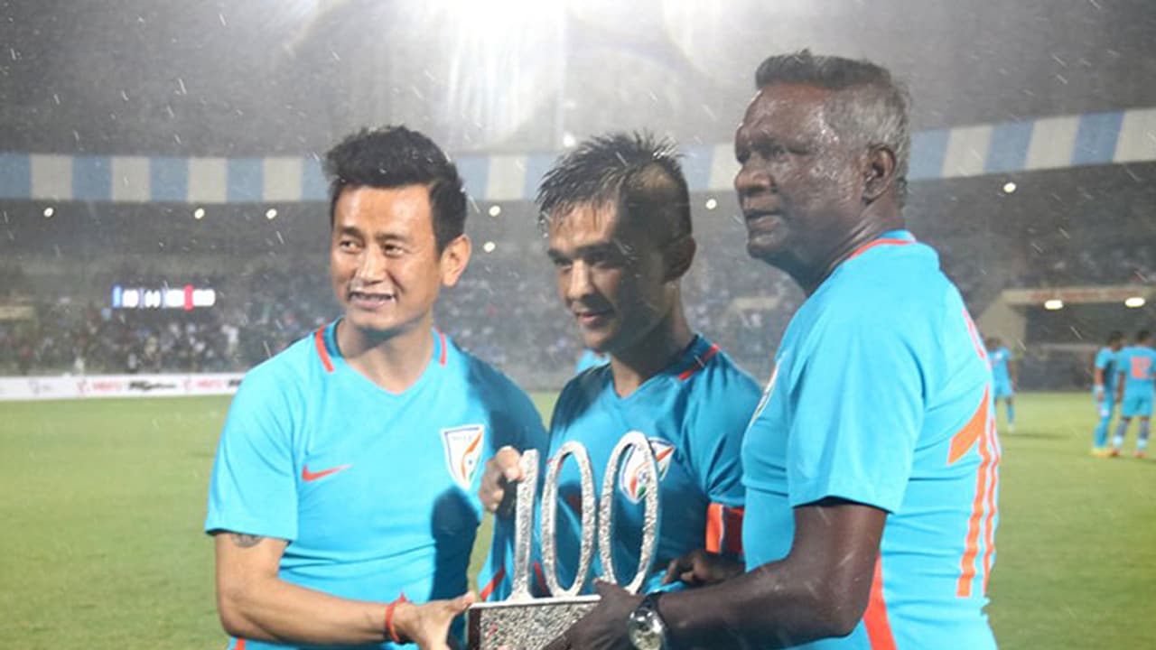 ഛേത്രിക്ക് ഉപഹാരം കൈമാറിയത് ഐഎം വിജയനും ബൂട്ടിയയും ചേര്‍ന്ന്