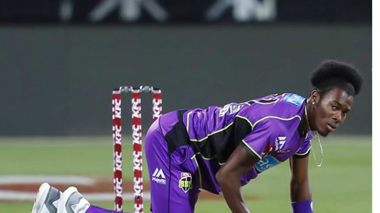 സിഡ്നി: ബിഗ് ബാഷ് ലീഗില് അമ്പരിപ്പിക്കുന്ന റണൗട്ടുമായി ഹൊബാര്ട്ട് ഹറികെയിന്സ് താരം ജോഫ്ര ആര്ക്കര്. അഡലെയ്ഡ് സ്ട്രൈക്കേഴ്സിനെതിരെ നടന്ന മത്സരത്തിലാണ് ജോഫ്രയുടെ തകര്പ്പന് റണൗട്ട് പിറന്നത്. അഡലെയ്ഡ് സ്ട്രൈക്കേഴ്സിന്റെ പതിനെട്ടാം ഓവറിലായിരുന്നു ക്രിക്കറ്റ് ലോകത്തെ വിസ്മയിപ്പിച്ച റണ്ണൗട്ട്. ആര്ക്കറെറിഞ്ഞ യോര്ക്കറില് അഡലെയ്ഡ് സ്ട്രൈക്കേഴ്സ് താരം അലക്സ് കാരി സിംഗിളെടുക്കാന് ശ്രമിച്ചു.