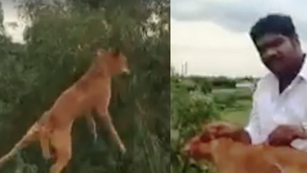 നായയുടെ കഴുത്തില് പിടിച്ച് താഴേക്ക് വലിച്ചെറിയുന്ന ഇയാള് ആരാണെന്ന് തിരിച്ചറിഞ്ഞിട്ടില്ല. നിലത്ത് വീണ നായ അനക്കമില്ലാത്തെ കിടക്കുന്നതും ദയനീയമായി കരയുന്നതും കണ്ട് ഇയാള് ചിരിക്കുന്നതും ദൃശ്യങ്ങളില് കാണാം.