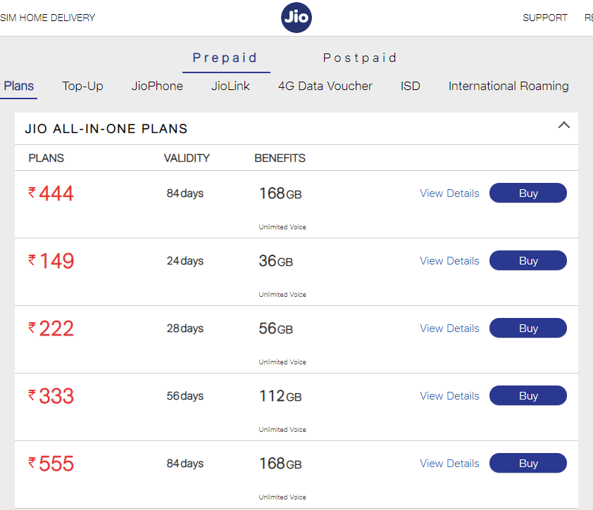ജിയോയുടെ പുതുക്കിയ നിരക്കുകൾ