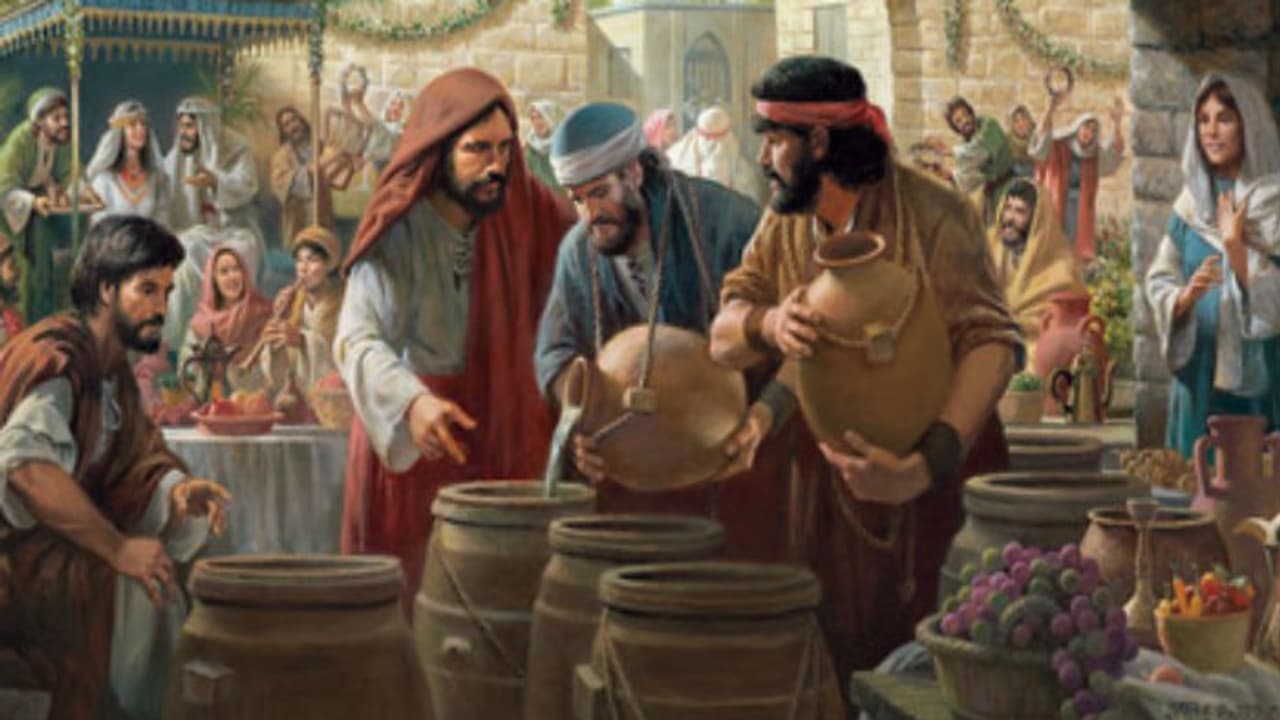 ക്രിസ്തുവും അദ്ദേഹത്തിന്റെ മാതാവും ശിഷ്യരും കാനായിലെ കല്യാണത്തിന് എത്തിയപ്പോള് വീഞ്ഞ് തീര്ന്ന് പോയപ്പോഴാണ് യേശു അവിടെ വെള്ളം വീഞ്ഞാക്കിയെന്നാണ് ജോണിന്റെ സുവിശേഷത്തില് പരാര്ശമുള്ളത്. വൈന് തീര്ന്നതറിഞ്ഞ് ജീസസ് ജാറുകളില് ജലം കൊണ്ട് വരാന് വേലക്കാരോട് ആവശ്യപ്പെടുകയും അവ ജീസസ് പെട്ടെന്ന് വീഞ്ഞാക്കി മാറ്റുകയുമായിരുന്നു. ഈ പ്രവൃത്തിയിലൂടെയാണ് ജീസസ് തന്റെ ദൈവികത ആദ്യമായി വെളിപ്പെടുത്തിയിരുന്നതെന്നും ജോണ് തന്റെ സുവിശേഷത്തിലൂടെ വെളിപ്പെടുത്തുന്നു.