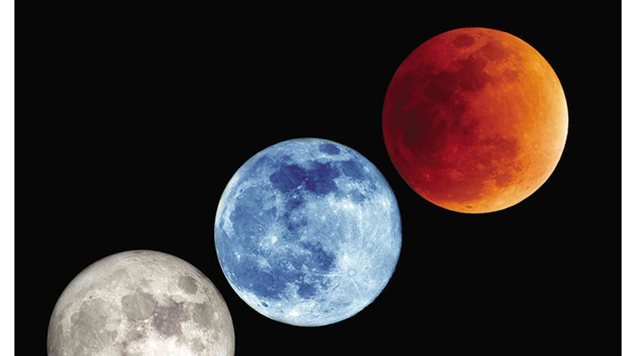 തിരുവനന്തപുരം: ഇന്നു വൈകിട്ട് ആകാശത്ത് അരങ്ങേറുന്ന ചാന്ദ്രവിസ്മയം കണ്ടില്ലെങ്കിൽ ഈ ജന്മത്തിൽ പിന്നെ കാണാൻ കഴിയില്ല.ബ്ലൂമൂൺ, സൂപ്പർമൂൺ, ബ്ലഡ് മൂൺ എന്നീ മൂന്നു ചാന്ദ്രപ്രതിഭാസങ്ങൾ ഒരുമിച്ച് ഇന്നത്തെ സന്ധ്യാമാനത്തു കാണാം. ഇവ മൂന്നും അപൂർവ പ്രതിഭാസങ്ങളല്ല. പക്ഷേ, ഒരുമിച്ചു സംഭവിക്കുന്നത് അത്യപൂർവം. എന്താണ് ഇവ മൂന്നും എന്ന് നോക്കാം.