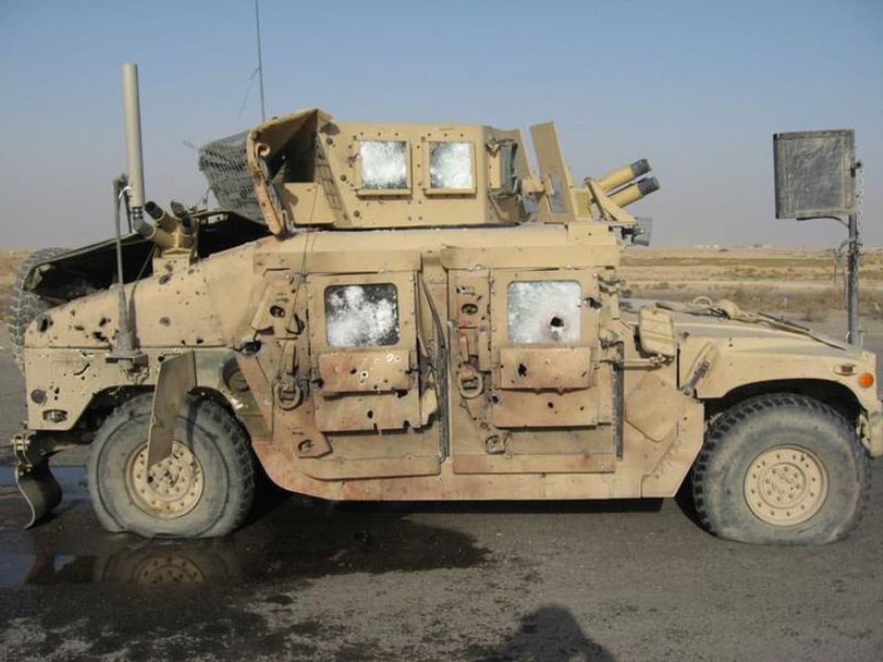 രണ്ടേരണ്ട് ദ്വാരങ്ങൾ മാത്രം. ഒരു പ്രവേശന ദ്വാരം അഥവാ എൻട്രി ഹോൾ, ഒരു നിർഗമനദ്വാരം അഥവാ എക്സിറ്റ് ഹോൾ. രണ്ടിന്റെയും റിമ്മിൽ പറ്റിപ്പിടിച്ചിരിക്കുന്ന ഉരുകിയ കോപ്പർ ഇപ്പോൾ തണുത്ത് ഉറഞ്ഞിരിക്കുന്നു. അതല്ലാതെ വാഹനത്തിന് വിശേഷിച്ച് ഉലച്ചിലൊന്നും പറ്റിയിട്ടില്ല. എന്നാൽ, അതിനുള്ളിൽ ഉണ്ടായിരുന്ന അമേരിക്കൻ സൈനികരുടെ ശരീരങ്ങൾ സ്ഫോടനത്തിൽ ഛിന്നഭിന്നമായിപ്പോയി. അവരിൽ ജീവനോടെ അവശേഷിച്ചിരുന്നവരെ എയർ ആംബുലൻസിൽ അടുത്തുള്ള സൈനിക ആശുപത്രിയിലേക്കു നീക്കിയിട്ടുണ്ട്. തലക്കുമീതെ ഉദിച്ചു നിൽക്കുന്ന ഇറാഖി സൂര്യന്റെ വെയിൽ നിലത്ത് തളം കെട്ടികിടക്കുന്ന ചോരയിൽ വെട്ടിത്തിളങ്ങുന്നുണ്ട്.
