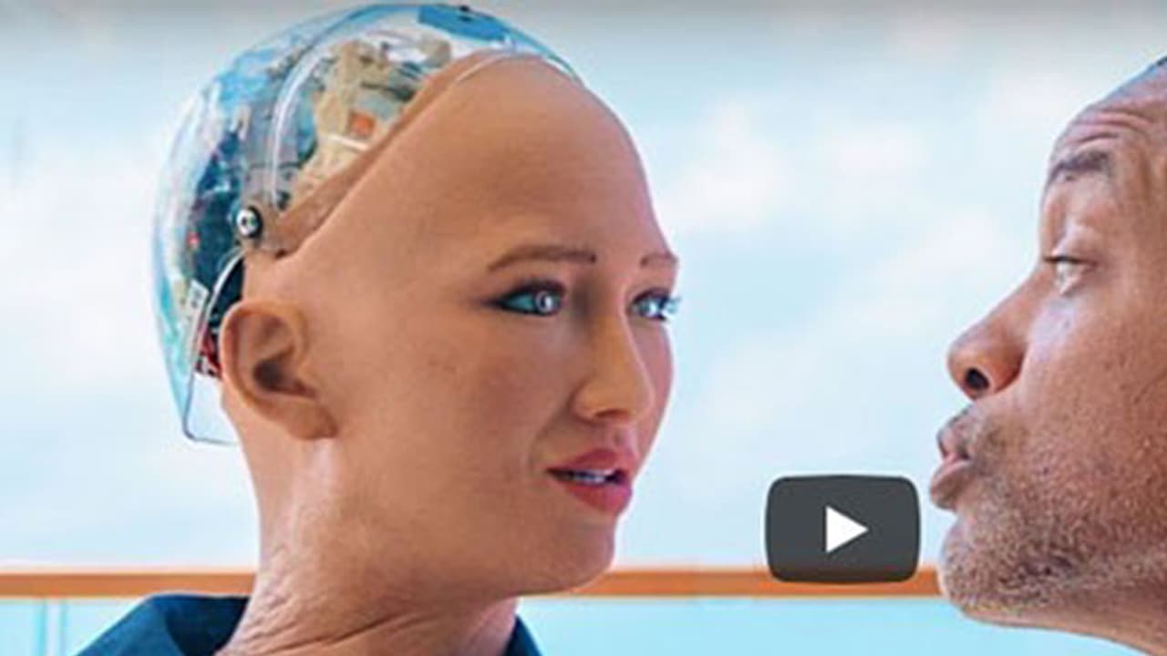 സോഫിയയുമായി ഡേറ്റിങിന് അവസരം ലഭിച്ച സ്മിത്തും സോഫിയയും തമ്മിലുള്ള സൗഹൃദത്തിന്റെ വിഡിയോയാണ് ഇപ്പോള് ശ്രദ്ധ നേടുന്നത്. 62 ഭാവങ്ങൾ മിന്നിമറയുന്ന സോഫിയയുടെ മുഖത്ത് പ്രണയം വിടർത്താൻ ഹോളിവുഡ് റോബോട്ടിക് ചിത്രങ്ങളിലെ നായകൻ വിൽ സ്മിത്തിന് കഴിഞ്ഞില്ല. ഒടുവിൽ ഒരു ചുംബനത്തിന് ശ്രമിച്ച സ്മിത്തിന് സോഫിയ നൽകിയ മറുപടി അതിഗംഭീരമാണ്.