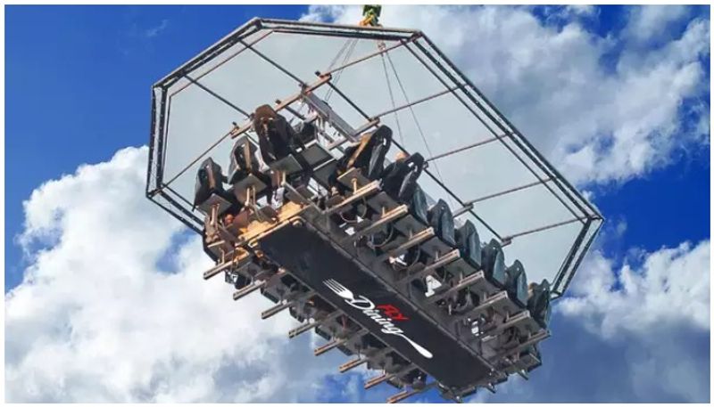 ഭക്ഷണവും സാഹസികതയും ചേര്ത്ത് നോയിഡയിലാണ് ഫ്ലൈ ഡൈയിംഗ് എന്ന സംരംഭം ആരംഭിച്ചത്. നിഖില് കുമാര് എന്നയാളുടെ തലയില് ഉദിച്ചതാണ് അസ്തമയം കണ്ടുകൊണ്ട് ആകാശത്തിരുന്ന് ആഹാരം കഴിക്കാവുന്ന ഈ സംവിധാനം. തന്റെ ദുബായ് സന്ദര്ശനത്തിനിടയിലായിരുന്നു നിഖിലിന് ഈ ആശയം ഉദിച്ചത്.
