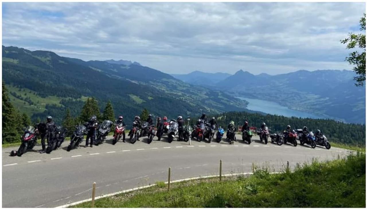 സ്വിസ് ആൽപ്സ് എന്നറിയപ്പെടുന്ന യാത്ര മോട്ടോർ സൈക്കിളിലാണ് 19 അംഗ സംഘം കീഴടക്കിയത്