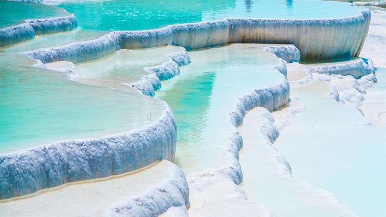 പകലിലെ വിമാനയാത്രകള് സമ്മാനിക്കുന്ന മനോഹരമായയൊരു കാഴ്ചയുണ്ട്. സൂര്യവെളിച്ചത്തില് പഞ്ഞിക്കെട്ടുകള് കൂട്ടിയിട്ടതുപോലെ അനന്തമായങ്ങിനെ പരന്നുകിടക്കുന്ന വെള്ളിമേഘങ്ങള്. ഇവയെ ഭൂമിയിലിറക്കി, അതൊരു മലയായാല് എങ്ങനെയുണ്ടാവും? ഏതാണ്ട് അത്തരമൊരു കാഴ്ചയാണ് പാമുക്കലേ നമുക്ക് സമ്മാനിക്കുന്നത്.