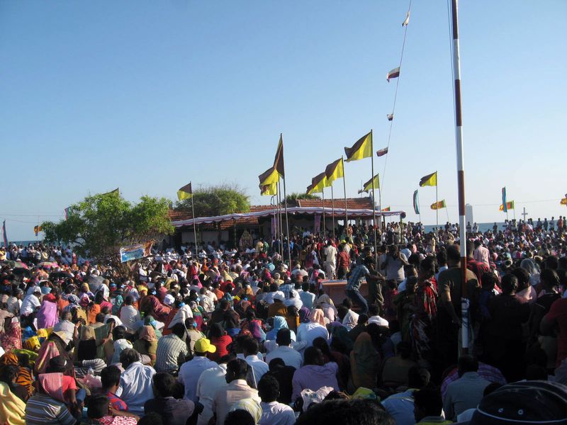 വിശ്വാസികളാല് തിങ്ങിനിറഞ്ഞിരിക്കുകയാണ് ദേവാലയ പരിസരം. കടല്തീരത്തോട് ചെര്ന്ന് ഓടിട്ട, ആഢംബരങ്ങളൊന്നുമില്ലാത്ത ലളിതമായ നിര്മിതിയാണ് ദേവാലയം. ശ്രീലങ്കയില്നിന്നും ഇന്ത്യയില്നിന്നുമുള്ള വൈദികര്ക്കാണ് ദേവാലയശുശ്രൂക്ഷയുടെ ചുമതലകള്. കുറ്റിക്കാടുകള് തെളിച്ച് തുണികള് കെട്ടി മറച്ച് താത്കാലിക താമസസ്ഥലം ചിലര് ഒരുക്കിയിരിക്കുന്നു. എങ്കിലും കൂടുതല്പേരും തുണികള് വിരിച്ച് കടത്തീരത്താണ് വിശ്രമം. യാത്രയുടെ ക്ഷീണമകറ്റാന് ചിലരാകട്ടെ കടലില് കുളിക്കുന്നുണ്ട്. ശക്തമായ തിരകളില്ലാത്തതിനാല്, ഒരു തടാകത്തിലെന്നപോലെ ആസ്വാദ്യകരമാണ് ഈ തീരത്തെ കുളി.