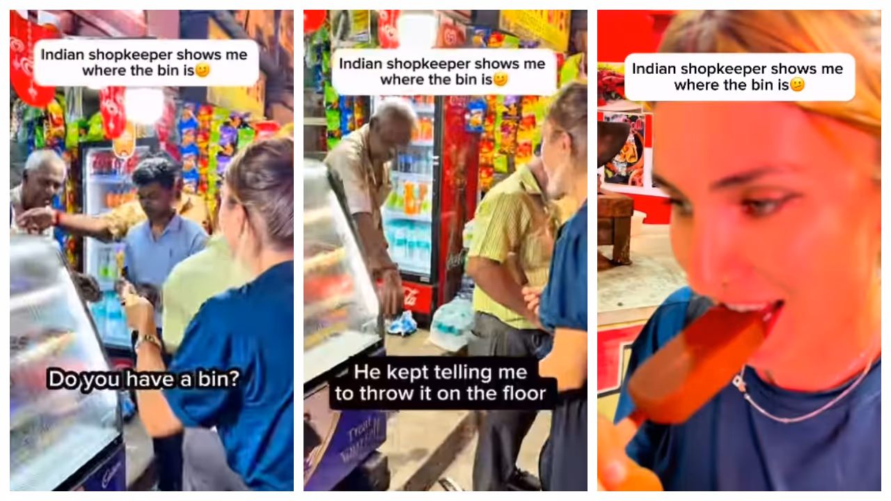 സമൂഹ മാധ്യമങ്ങളില് അതിവേഗം പ്രചരിക്കുന്ന ഒരു വീഡിയോയിൽ, ഒരു പ്രാദേശിക ഐസ്ക്രീം കച്ചവടക്കാരൻ, തന്റെ ഐസ്ക്രീം കവർ ശരിയായ രീതിയിൽ കളയാൻ ഡസ്റ്റ്-ബിൻ ചോദിച്ച വിദേശ കസ്റ്റമറോട് അത് റോഡിൽ കളയാൻ പറയുന്നതിന്റെ ദൃശ്യങ്ങൾ സമൂഹ മാധ്യമങ്ങളില് വൈറലാകുന്നു.