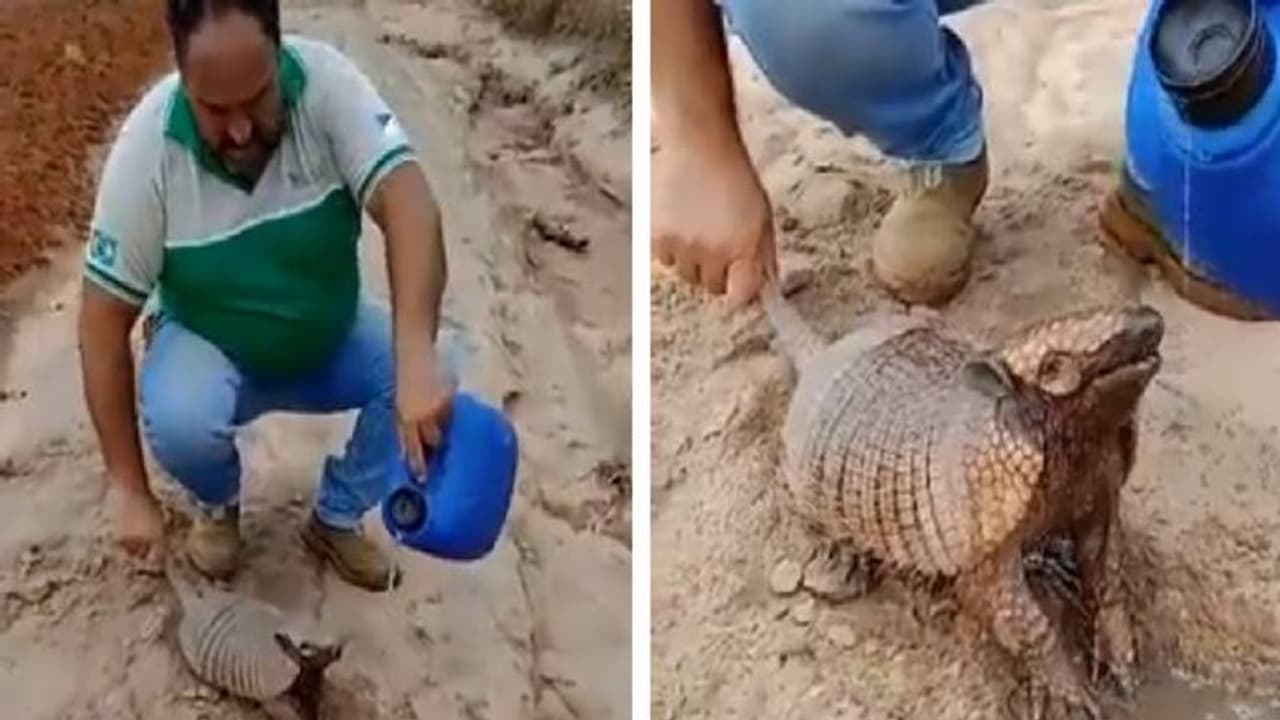 പാടം പോലെയുള്ളൊരു സ്ഥലത്ത് ഒരു ഇത്തിൾപ്പന്നി (Armadillo) -യേയും ഒരു മനുഷ്യനേയും നമുക്ക് വീഡിയോയിൽ കാണാം. അദ്ദേഹത്തിന്റെ കയ്യിൽ ഒരു കന്നാസുമുണ്ട്. അദ്ദേഹം ആ ജീവി ആകെ പേടിച്ചിരിക്കുന്നത് പോലെയാണ് കാണുന്നത്. എന്നാൽ, അയാൾ അതിന്റെ മുകളിലേക്ക് പയ്യെ വെള്ളം ഒഴിക്കുമ്പോൾ അതിന് ആശ്വാസം ആയതുപോലെ തോന്നുന്നു. അവസാനം അയാൾ വേനലിൽ ചൂടെടുത്ത്, ദാഹിച്ച് നിൽക്കുന്ന ഇത്തിൾപ്പന്നിക്ക് കുടിക്കാൻ പാകത്തിൽ വെള്ളം ഒഴിച്ചുകൊടുക്കുകയാണ്.