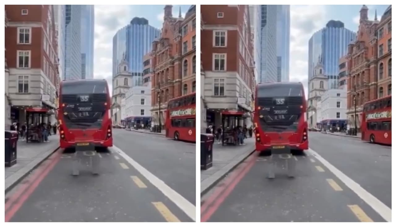 ഇഗിൾ നെബുല എന്ന എക്സ് ഹാന്റില് നിന്നും വീഡിയോ പങ്കുവച്ച് കൊണ്ട് 'ലണ്ടന് നഗരത്തിലെ ജിംനാസ്റ്റിക്ക് മറയ്ക്കൽ'. വീഡിയോ നിരവധി പേരാണ് പങ്കുവച്ചത്. വീഡിയോയില് അത്യാവശ്യം തിരക്കുള്ള ലണ്ടനിലെ ഒരു തെരുവില് ചുവന്ന ബോർഡർ ലൈനുകളുള്ള ഒരു ഡബിൾ ഡക്കർ ബസിന് മുന്നില് ഒരാള് ശരീരത്തില് എന്തൊക്കെയോ ബോർഡുകൾ കെട്ടിവച്ച നിലയില് നില്ക്കുന്നത് കാണാം. പിന്നാലെ ഇയാള് ബസിന് മുന്നില് തലകുത്തി നില്ക്കുന്നു. ഈ സമയം കാമറാമാന് ഇയാളുടെ പിന് വശത്തേക്ക് നടന്ന് ബസിന് അഭിമുഖമായി നില്ക്കുമ്പോഴാണ് കാഴ്ചക്കാരന് അതിശയപ്പെടുക. അവിടെ അങ്ങനെയൊരാള് തല കുത്തി നില്ക്കുന്നില്ല.