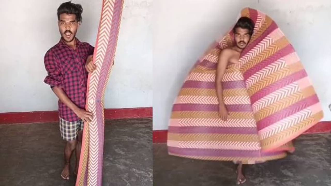 കാരണം ഒരു ചെറുപ്പക്കാരൻ തന്റെ പായ മാത്രം ഉപയോഗിച്ച് നടത്തുന്ന ഒരു ഫാഷൻ ഷോ ആണ് ഇത്. ആരെയും അമ്പരപ്പിക്കും വിധമാണ് ഈ യുവാവ് പായയെ വ്യത്യസ്തമായതും എന്നാൽ ആകർഷകവുമായ രീതിയിൽ വിവിധ വസ്ത്രങ്ങളാക്കി മാറ്റുകയും അവ ധരിച്ച് റാംപ് വാക്ക് നടത്തുകയും ചെയ്യുന്നത്. ടിക് ടോക്കർ തരുൺ നായക് എന്ന ഇൻസ്റ്റാഗ്രാം ഐഡിയിലാണ് ഈ വീഡിയോ പോസ്റ്റ് ചെയ്തിരിക്കുന്നത്. ഷർട്ടും ബർമൂഡയും ധരിച്ച് കൈയിൽ ഒരു പായയുമായി നിൽക്കുന്ന യുവാവാണ് വീഡിയോയുടെ തുടക്കത്തിൽ.