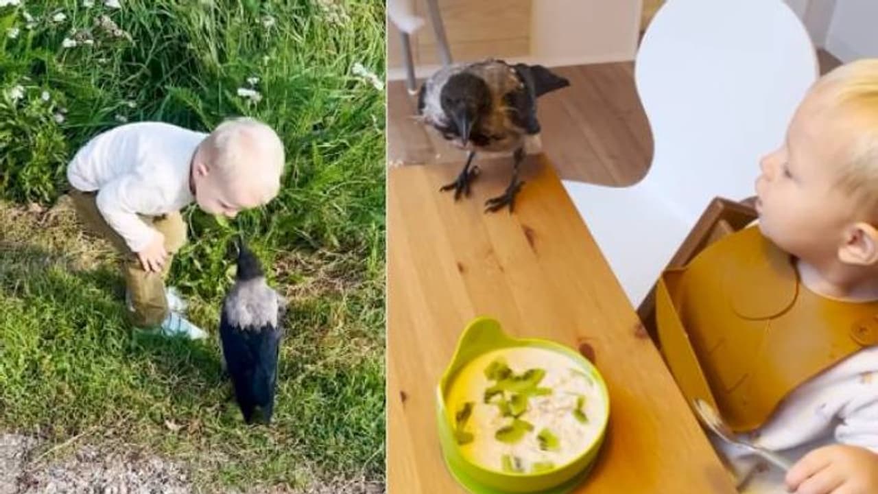 വളർത്തുമൃഗങ്ങളും പക്ഷികളും എക്കാലത്തും മനുഷ്യരുടെ ജീവിതത്തിൽ വലിയ സ്വാധീനം ചെലുത്തിയിട്ടുണ്ട്. എന്നാൽ, സാധാരണയായി പട്ടി, പൂച്ച, ഇവയൊക്കെയാണ് നമ്മുടെ വളർത്തു മൃഗങ്ങൾ. മിക്കവാറും കുഞ്ഞുങ്ങൾ കൂട്ടുകൂടുന്നതും പട്ടിയോടും പൂച്ചയോടും ഒക്കെ ആയിരിക്കും. എന്നാൽ, ഈ രണ്ട് വയസ്സുകാരന് കൂട്ട് ഒരു കാക്കയാണ്.
