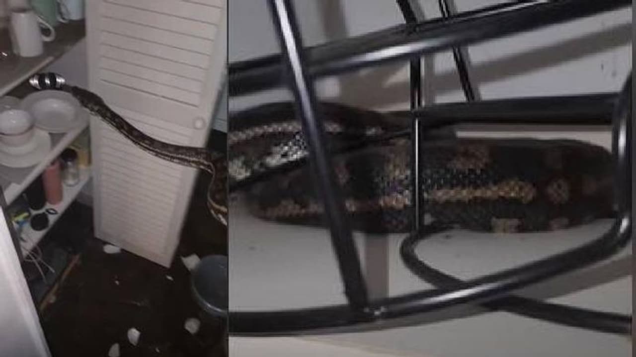 ക്വീൻസ്ലാന്റിലെ സൺഷൈൻ കോസ്റ്റ് റീജിയണിലെ ഗ്ലെൻവ്യൂവിലാണ് സംഭവം നടന്നത്. സൺഷൈൻ കോസ്റ്റ് സ്നേക്ക് ക്യാച്ചേഴ്സ് തങ്ങൾ നടത്തിയ രക്ഷാപ്രവർത്തനത്തിന്റെ ഒരു വീഡിയോ ഫേസ്ബുക്കിൽ പങ്കുവെച്ചിരുന്നു. അതിപ്പോൾ വൈറലാണ്. അതിൽ ഒരു മനുഷ്യൻ തന്റെ കാറിന്റെ പുറകിൽ നിന്ന് ഒരു വടി എടുത്ത് വീട്ടിലേയ്ക്ക് നടക്കുന്നത് കാണിക്കുന്നു. ആകെ അലങ്കോലമായി കിടക്കുന്ന അടുക്കളയിലേയ്ക്ക് അദ്ദേഹം കടന്നു. മുകളിലെ ഷെൽഫുകൾക്ക് ചുറ്റും ക്യാമറ ചലിപ്പിച്ച ശേഷം, അയാൾ പാമ്പിനെ കണ്ടെത്തി. വെറും കൈകൊണ്ട് അതിനെ പിടിച്ച് അദ്ദേഹം ചാക്കിലിട്ടു. പിന്നീട് അദ്ദേഹം അതിനെ കുറ്റിക്കാട്ടിൽ വിട്ടു.