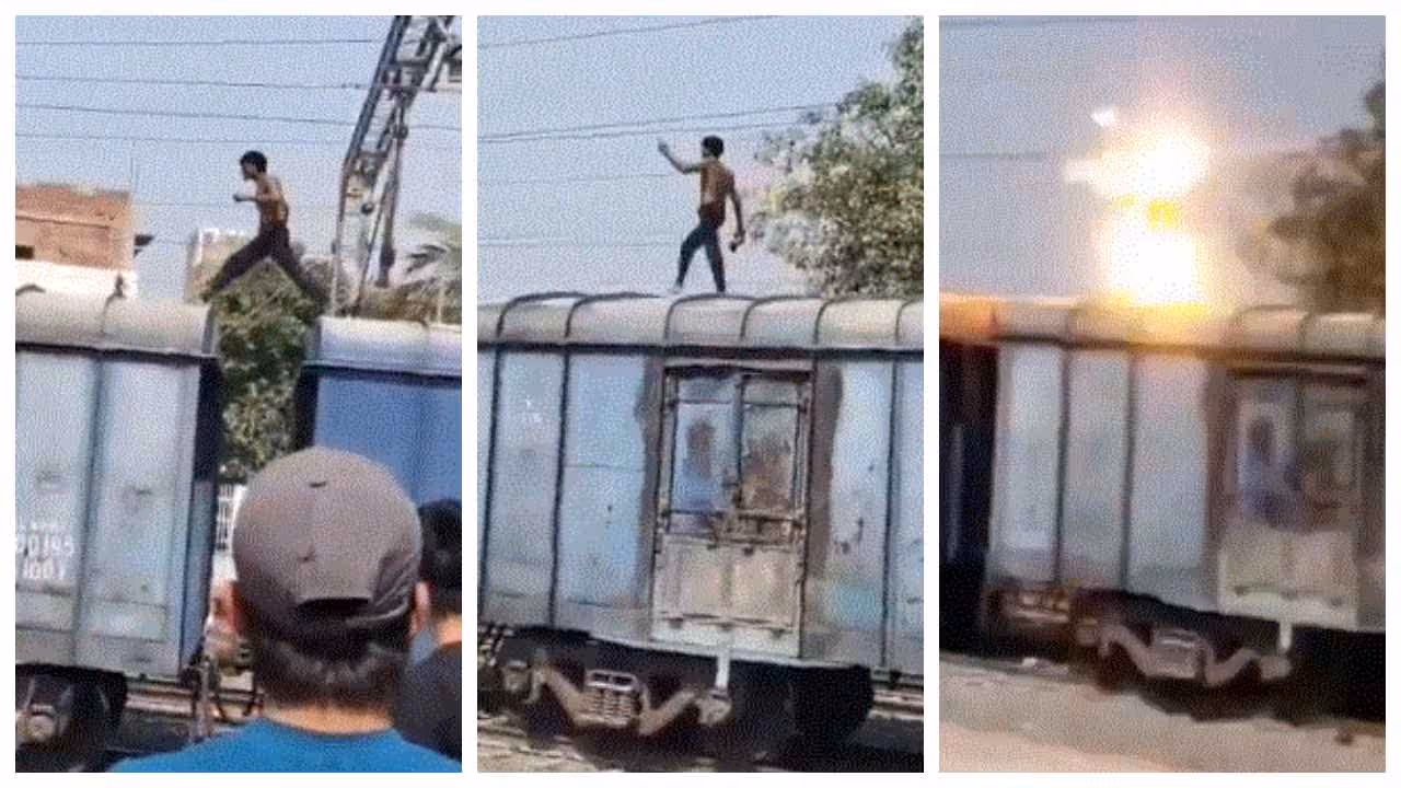 ഈ സമയം വലിയൊരു തീപ്പൊരിയും സ്ഫോടനം പോലെ ശബ്ദവും ഉയർന്നു. പിന്നാലെ ഉയർന്ന പുക അടങ്ങിയപ്പോൾ യുവാവ് അനക്കമില്ലാതെ ഗുഡ്സ് ട്രെയിനിന്‍റെ ബോഗിക്ക് മുകളിൽ വീണ് കിടക്കുന്നതും കാണാം. ഈ സമയം സമീപത്ത് നിന്നവർ നിലവിളിക്കുന്നതും വീഡിയോയിൽ കേൾക്കാം. യുവാവിനെ ഇതുവരെ തിരിച്ച‌റിഞ്ഞില്ലെന്ന് റിപ്പോര്‍ട്ടുകൾ പറയുന്നു. ഗുരുതരമായ വൈദ്യുതാഘാതമേറ്റ ഇയാൾ സംഭവ സ്ഥലത്ത് വെച്ച് തന്നെ മരിച്ചതെന്ന് പ്രാഥമിക റിപ്പോർട്ടുകൾ സൂചിപ്പിക്കുന്നു. വീഡിയോ പിന്നീട് സമൂഹ മാധ്യമങ്ങളിൽ വ്യാപകമായി പ്രചരിച്ചു, സമൂഹ മാധ്യമ ഉപയോക്താക്കളിൽ നിന്ന് രൂക്ഷമായ പ്രതികരണങ്ങളാണ് ഉയർന്നത്. നിരവധി പേർ സംഭവത്തിൽ ഞെട്ടൽ രേഖപ്പെടുത്തി. മറ്റ് ചിലർ യുവാവിന് മാനസികമായി അസ്വസ്ഥത ഉള്ളതായി സംശയം പ്രകടിപ്പിച്ചു. അതേസമയം ഇന്ത്യൻ റെയിവേയിൽ നിന്നും സംഭവത്തിൽ ഔദ്ധ്യോഗിക പ്രതികരണങ്ങളൊന്നും ഉയ‍ർന്നില്ല.