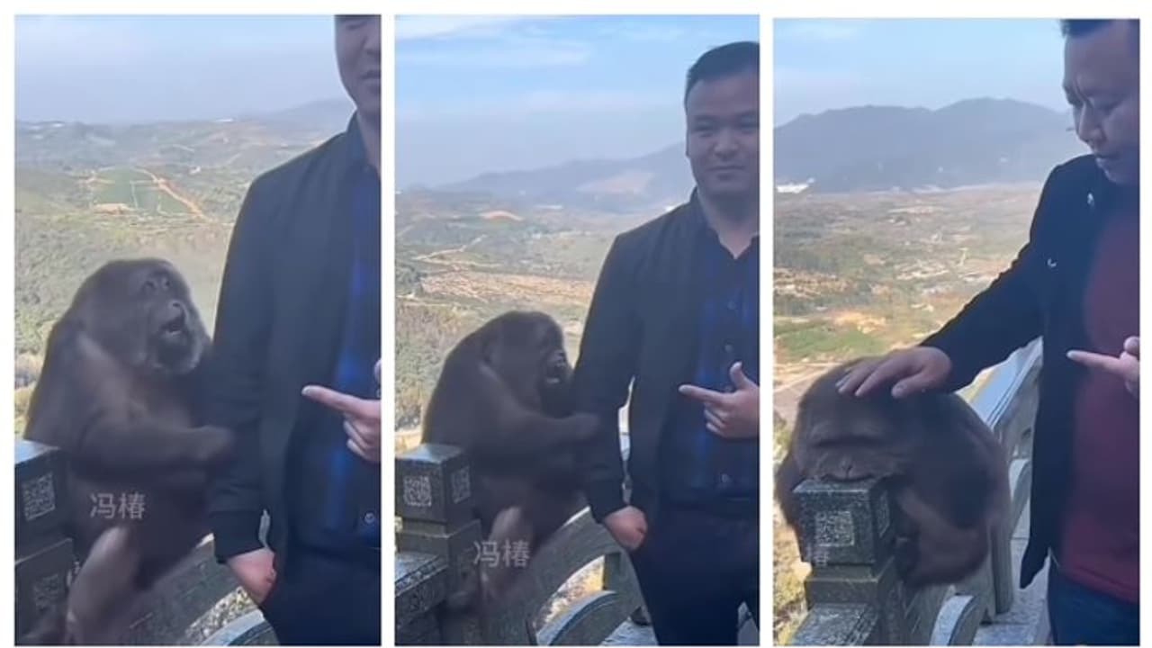 ഒരു വിനോദ സഞ്ചാര കേന്ദ്രത്തിലെ സംരക്ഷണ മതിലിൽ ഇരിക്കുന്ന കുരങ്ങനും അവന് അരികില് നിന്ന് ഒരു ഗ്രൂപ്പ് ഫോട്ടോയ്ക്ക് ശ്രമിക്കുന്ന ഒരു സഞ്ചാരിയുമാണ് വീഡിയോയിലുള്ളത്. വിനോദ സഞ്ചാരി കുരങ്ങിനരികിൽ നിന്ന് ഫോട്ടോയ്ക്ക് പോസ് ചെയ്യുന്നു. എന്നാൽ, സഞ്ചാരിയെ ഒന്ന് പേടിപ്പിച്ചു കളയാം എന്നായി കുരങ്ങന്. പിന്നെ വൈകിയില്ല കുരങ്ങൻ അയാളുടെ കയ്യിൽ മുറുകെ പിടിക്കുകയും കടിക്കുന്നതായി അഭിനയിക്കുകയും ചെയ്യുന്നു. പക്ഷേ, ഒരുപാട് തവണ ഈ അഭിനയം ആവർത്തിച്ചിട്ടും യാതൊരു അസ്വസ്ഥതയും പ്രകടിപ്പിക്കാതെ തനിക്ക് അരികിൽ നിൽക്കുന്ന മനുഷ്യനെ കുരങ്ങൻ നോക്കുന്നു. പിന്നെ അയാളുടെ നിസ്സംഗമായ പെരുമാറ്റത്തിൽ നിരാശനായ കുരങ്ങൻ തലതാഴ്ത്തി കിടക്കുന്നു. ഈ സമയം സഞ്ചാരി കുരങ്ങന്റെ തലയില് തലോടുന്നതും വീഡിയോയില് കാണാം.