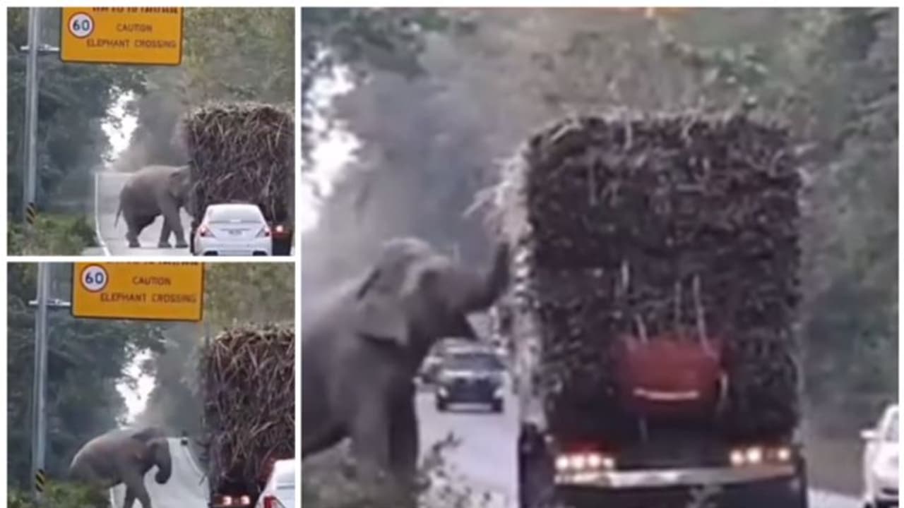 @DoctorAjayita ല് ആയുര്വേദ, യോഗ ക്ലിനിക്ക് നടത്തുന്ന ഡോ അജയിതയാണ് വീഡിയോ പങ്കുവച്ചത്. കിഴക്കനേഷ്യന് രാജ്യമായ തായ്ലന്റില് നിന്നുള്ള വീഡിയോയാണ് അവര് തന്റെ ട്വിറ്റര് അക്കൌണ്ടിലൂട പങ്കുവച്ചത്. "ശ്രദ്ധിക്കുക, ആന വഴി മുറിച്ച് കടക്കുന്നു" എന്ന് തായ് ഭാഷയിലും ഇംഗ്ലീഷിലും എഴുതിയ ഒരു ബോര്ഡിന് താഴെ റോഡിന് പുറത്തായി ഒരു ആന നില്ക്കുന്നതില് നിന്നാണ് വീഡിയോ തുടങ്ങുന്നത്. റോഡിലൂടെ വാഹനങ്ങള് പോകുന്നതും കാണാം. പെട്ടെന്ന് എതിരെ വരുന്ന ഒരു കരിമ്പ് ലോറി ആനയെ മറികടന്ന് പോകാന് ശ്രമിക്കുമ്പോള് ആന റോഡിലേക്ക് കയറിവന്ന് വാഹനം തടയുന്നു. പിന്നീട് ലോറിയുടെ പുറകില് അടുക്കി വച്ചിരിക്കുന്ന കരിമ്പുകളില് നിന്ന് ഒരു തുമ്പിക്കൈയില് കൊള്ളാവുന്നത്രയും വലിച്ചെടുത്ത് റോഡ് വശത്ത് നിന്ന് തന്നെ കഴിക്കുന്നു. ഈ സമയമത്രയും റോഡിലൂടെ വാഹനങ്ങള് കടന്ന് പോകുന്നുണ്ട്. മറ്റൊരു കരിമ്പ് വണ്ടി വരുമ്പോള് ആന തന്റെ കലാപരിപാടി തുടരുന്നു. 'ട്രോളിലെ ടാക്സ് കലക്റ്റര്' എന്ന് പറഞ്ഞ് കൊണ്ടാണ് ഡോ അജയിത