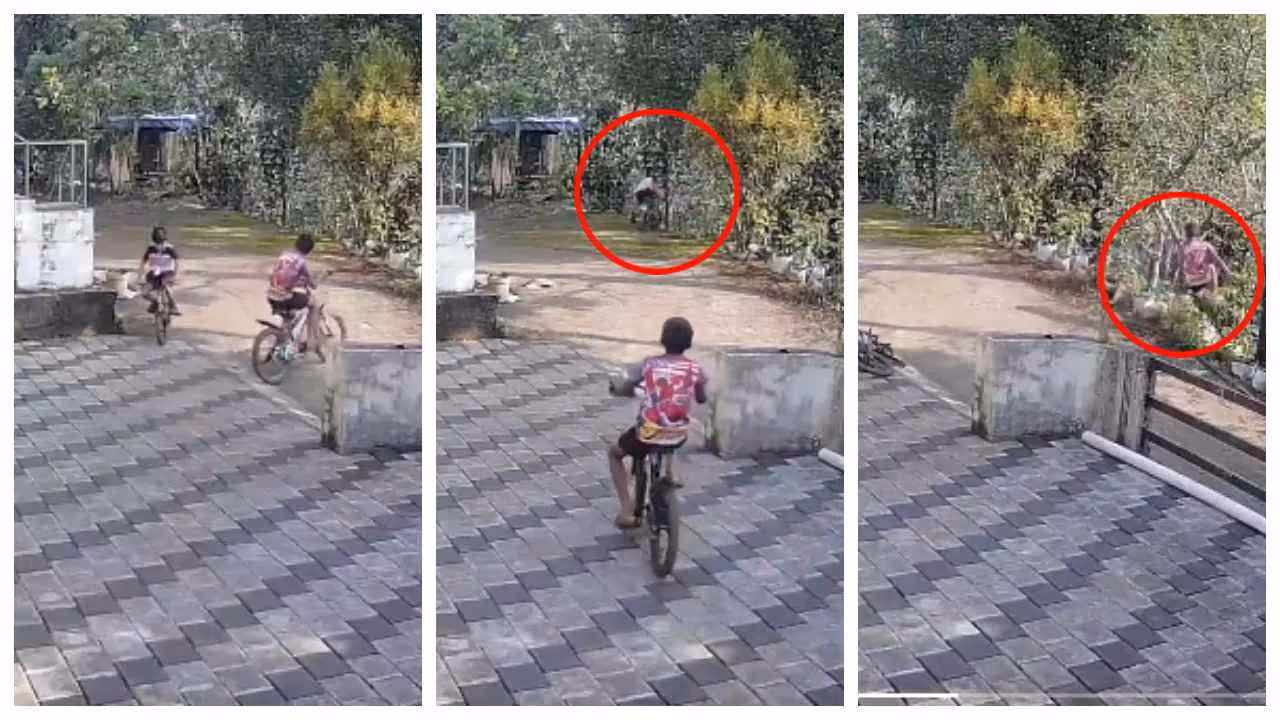 ഡിസംബർ 11-ാം തിയതി വീടിന് സമീപത്തെ സിസിടിവി ക്യാമറയിലാണ് ഈ ദൃശ്യങ്ങൾ പതിഞ്ഞത്. കുന്നിൻ ചെരിവിനോട് ചേർന്നുള്ള വീട്ടുമുറ്റത്ത് കൂടി സൈക്കിൾ ചവിട്ടുകയായിരുന്നു രണ്ട് സഹോദരങ്ങൾ. ഇതിനിടയിൽ പെട്ടെന്ന് ഇളയ സഹോദരൻ സൈക്കിളിന്റെ നിയന്ത്രണം നഷ്ടപ്പെട്ട് റോഡിന്റെ അരികിലേക്ക് അപകടകരമായി വഴുതി വീണു. നിമിഷനേരം കൊണ്ട് അവിടെ നിന്നും റോഡരികിലെ ആഴമേറിയ കുഴിയിലേക്ക് സൈക്കിളും കുട്ടിയും പതിക്കുന്നു. ഇതോടെ സാഹചര്യം അതീവ ഗുരുതരമായി മാറി. എന്നാൽ ഒരു നിമിഷം പോലും വൈകാതെ ജ്യേഷ്ഠൻ രക്ഷാപ്രവർത്തനത്തിന് ചാടി ഇറങ്ങി. ഒന്ന് ചിന്തിക്കുക പോലും ചെയ്യാതെ, അനിയനെ പിടിച്ചുയർത്താനായി ആ കുഴിയിലേക്ക് അവനും ചാടുന്നതും സിസിടിവി ദൃശ്യങ്ങളിൽ കാണാം. പിന്നാലെ അയൽക്കാര് ഓടിയെത്തുന്നതും വീഡിയോ ദൃശ്യങ്ങളിൽ കാണാം.