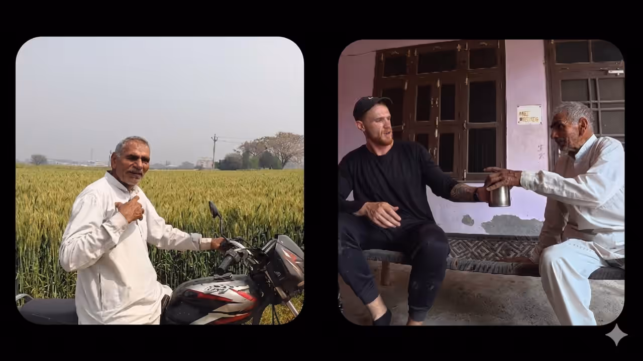 ഇന്ത്യയിലെ മനുഷ്യരുടെ ആതിഥ്യമര്യാദ ലോകപ്രശസ്തമാണ്. 'അതിഥി ദേവോ ഭവ' എന്ന് കരുതുന്നവരാണ് പല ഇന്ത്യക്കാരും. ഇന്ത്യയിലെ പല ഗ്രാമങ്ങളിലും ഈ ആതിഥ്യമര്യാദ അനുഭവിക്കണമെങ്കിൽ പരിചയക്കാരാകണം എന്നു പോലുമില്ല. അത്തരത്തിലുള്ള മനോഹരമായ അനുഭവം പങ്കുവയ്ക്കുകയാണ് ഇന്ത്യ കാണാനെത്തിയ ബ്രിട്ടണിൽ നിന്നുള്ള ഒരു യുവാവ് സോഷ്യൽ മീഡിയയിൽ. ഒരു ഗ്രാമത്തിൽ വയലിലൂടെ സൈക്കിൾ ചവിട്ടി പോവുകയായിരുന്നു ഡങ്കൻ ഇവാൻസ് എന്ന യുവാവ്. അപ്പോഴാണ് ഗ്രാമവാസിയായ ഒരാൾ ഇവാൻസിനെ തടഞ്ഞു നിർത്തിയത്. കനത്ത ചൂടാണല്ലോ എങ്ങും, ആ ചൂടിൽ അങ്ങനെ പോകാതെ ഒരു ഗ്ലാസ് മോര് കുടിച്ചിട്ട് പോകാം എന്ന് പറഞ്ഞുകൊണ്ട് അദ്ദേഹം ഇവാൻസിനെ തന്റെ വീട്ടിലേക്ക് ക്ഷണിക്കുകയായിരുന്നു.