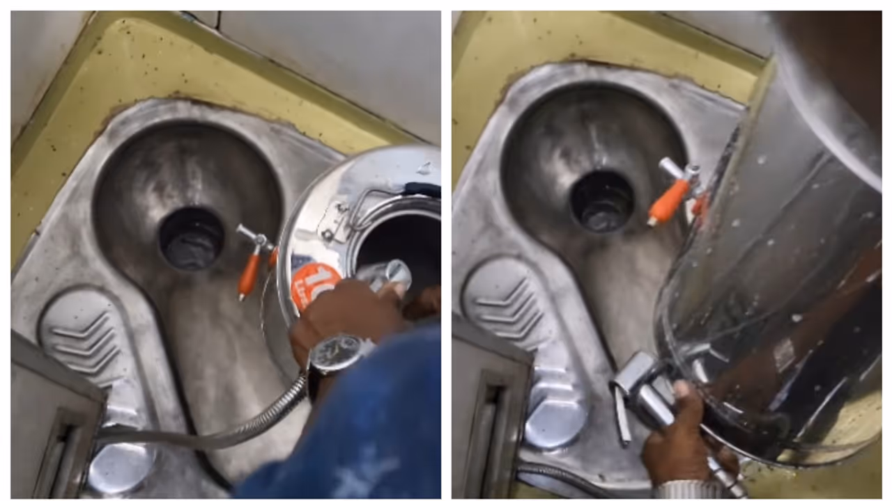 ട്രെയിനിലെ ശുചിമുറിയില് വച്ച് ചായ കച്ചവടക്കാരന്, തന്റെ ചായ പാത്രം കഴുകുന്ന വീഡിയോ സമൂഹ മാധ്യമ ഉപയോക്താക്കളെ അക്ഷരാര്ത്ഥത്തില് ഞെട്ടിച്ചു.