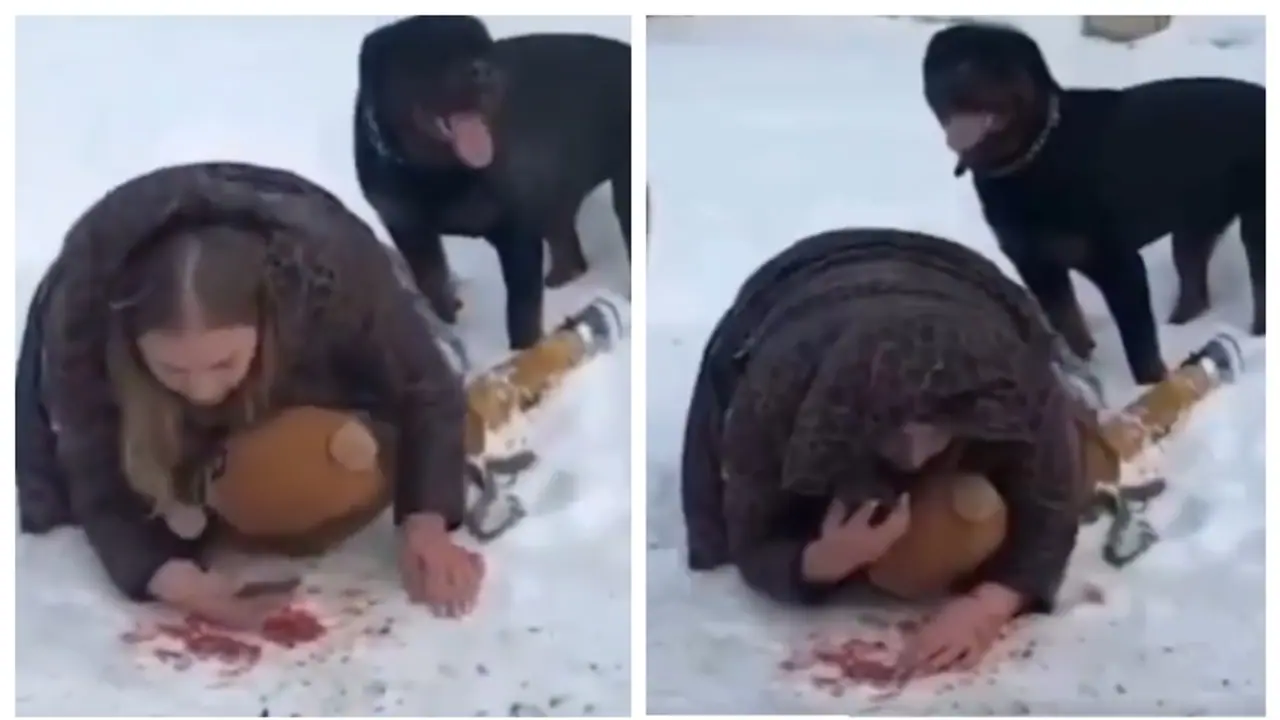 സംഭവത്തിന്റെ വീഡിയോ ആര് ടി ടെലിവിഷന് തങ്ങളുടെ എക്സ് അക്കൌണ്ടിലൂടെ പറുത്ത് വിട്ടു. ഇതിനകം ഒരു കോടി അറുപത്തി മൂന്ന് ലക്ഷം പേരാണ് വീഡിയോ കണ്ടത്. സമീപത്ത് നിര്ത്തിയിട്ട ഒരു കാറില് നിന്നും ചിത്രീകരിച്ച വീഡിയോയില് ചോര വീണ് ചുവന്ന മഞ്ഞിൽ ഒരു കുഞ്ഞിനെ നെഞ്ചോട് ചേര്ത്ത് കമന്ന് കിടക്കുന്ന ഒരു അമ്മയെ കാണാം. തൊട്ടുപിന്നിലായി ഒരു കൂറ്റന് റോഡ്വീലറും നില്ക്കുന്നു. ആക്രമണ സജ്ജനായി നില്ക്കുന്ന പട്ടി ചുറ്റുപാടും നിരീക്ഷിക്കുകയും ഇടയ്ക്ക് കുട്ടിക്ക് വേണ്ടി അമ്മയ്ക്കടുത്ത് മണപ്പിച്ച് നോക്കുന്നതും കാണാം. നായയുടെ ശ്രദ്ധ തിരിക്കാനുള്ള ശ്രമം പാളുന്നതും വീഡിയോയില് കാണാം.