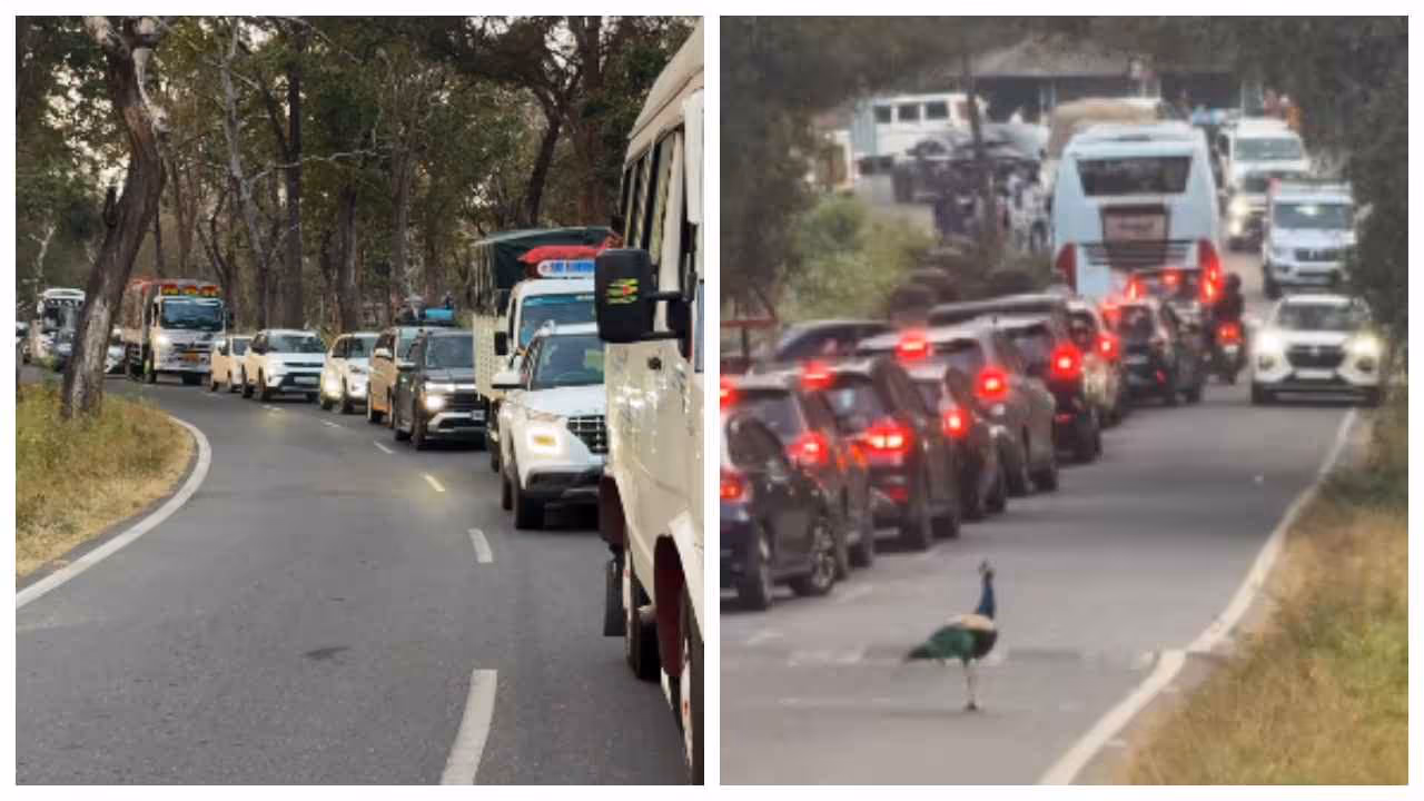 Travelfoodie_ak എന്ന ഇൻസ്റ്റാഗ്രാം ഉപയോക്താവാണ് വീഡിയോ പങ്കുവച്ചത്. വീഡിയോയിൽ ഒരു വശത്ത് നിരനിരയായി കാറുകളും മറ്റ് വാഹനങ്ങളും നിർത്തിയിട്ടിരിക്കുന്നത് കാണാം. റോഡിലെ വാഹനങ്ങൾ ഒഴിഞ്ഞ വശത്ത് വളരെ ശാന്തനായി ഒരു മയിൽ നിൽക്കുന്നതും കാണാം. അതേസമയം മയിൽ നിന്നിരുന്ന വശത്തെ വാഹനങ്ങൾ റോഡിൽ ഏറെ ദൂരെയായി, മയിൽ റോഡ് മുറിച്ച് കടക്കുന്നതും കാത്ത് നിൽക്കുന്നു. അതേസമയം മയിൽ റോഡിൽ കയറി നിന്നതിനെ തുടർന്ന് വാഹനങ്ങൾ കിലോമീറ്ററുകളോളും നീളത്തിൽ മുന്നോട്ട് പോകാനാകാതെ കുടുങ്ങിക്കിടക്കുന്നതും വീഡിയോയിൽ കാണാം.