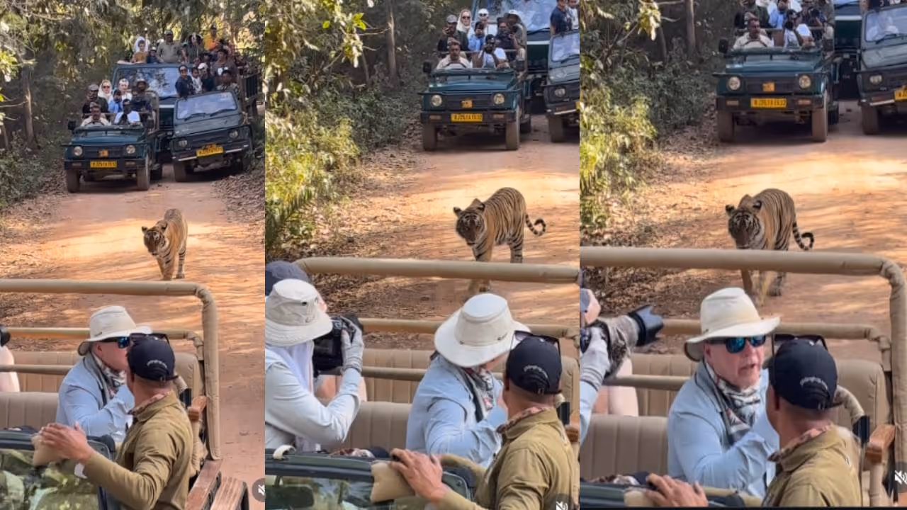 രാജസ്ഥാനിലെ പ്രശസ്തമായ രൺതംബോർ നാഷണൽ പാർക്കിൽ നിന്നുള്ള കാഴ്ചകളും വിശേഷങ്ങളും പലപ്പോഴും സോഷ്യൽ മീഡിയയിൽ ശ്രദ്ധിക്കപ്പെടാറുണ്ട്. എന്നാൽ, ഇവിടെ നിന്നുള്ള ഒരു ദൃശ്യമാണ് ഇപ്പോൾ സോഷ്യൽ മീഡിയയിൽ വലിയ വിമർശനങ്ങൾക്ക് കാരണമാകുന്നത്. കടുവയെ വളഞ്ഞു നിൽക്കുന്ന സഫാരി വാഹനങ്ങളാണ് വീഡിയോയിൽ കാണുന്നത്. മോണ്ടി ഭട്ട് എന്ന യൂസറാണ് വീഡിയോ സോഷ്യൽ മീഡിയയിൽ ഷെയർ ചെയ്തിരിക്കുന്നത്. വന്യമൃഗങ്ങൾക്ക് സ്വൈര്യമായി നടക്കാൻ പോലും സാധിക്കാത്ത രീതിയിൽ സഫാരി വാഹനങ്ങൾ അവയെ സമീപിക്കുന്നതാണ് വീഡിയോയിൽ ഉള്ളത്.