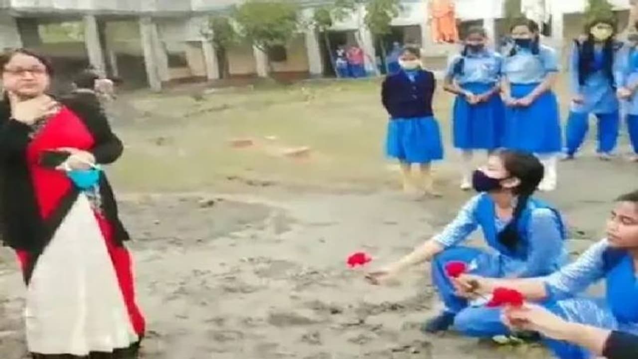 പശ്ചിമ ബംഗാളിൽ നിന്നുള്ള ഈ വീഡിയോയിൽ ഒരുകൂട്ടം വിദ്യാർത്ഥികൾ തങ്ങളുടെ പ്രിയപ്പെട്ട അധ്യാപികയ്ക്ക് ഹൃദയസ്പർശിയായ യാത്രയയപ്പ് നൽകുന്നത് കാണാം. പശ്ചിമ ബംഗാളിലെ നോർത്ത് 24 പർഗാനാസിലുള്ള കത്യഹത്ത് ബികെഎപി ഗേൾസ് ഹൈസ്കൂളിലെ വിദ്യാർത്ഥിനികളാണ് അധ്യാപികയ്ക്ക് വികാരഭരിതമായ യാത്രയയപ്പ് നൽകുന്നത്. ആ ക്ലിപ്പ് കണ്ടാൽ നമ്മളും അറിയാതെ നമ്മുടെ സ്കൂൾ കാലത്തെയും, നമ്മുടെ പ്രിയപ്പെട്ട അധ്യാപകരെയും ഓർത്ത് പോകും. വീഡിയോയിൽ കാണുന്ന വിദ്യാർത്ഥികളുടെ പ്രിയപ്പെട്ട ടീച്ചറുടെ പേര് സാമ്പ എന്നാണ്. വീഡിയോയുടെ തുടക്കത്തിൽ രണ്ട് പെൺകുട്ടികൾ അവരുടെ ടീച്ചറെ ഒരു മൈതാനത്തേക്ക് കൊണ്ടുവരുന്നത് കാണാം. അവിടെ ഒരുകൂട്ടം വിദ്യാർത്ഥിനികൾ ടീച്ചറെ വളയുന്നതും കാണാം. ക്ലിപ്പ് പുരോഗമിക്കുമ്പോൾ വിദ്യാർത്ഥികൾ കണ്ണീരോടെ ടീച്ചറോട് വിട പറയുന്നതാണ് നമ്മൾ കാണുക. അവർ ചുറ്റും മുട്ടുകുത്തി ഇരുന്ന് ടീച്ചർക്ക് നേരെ ചുവന്ന റോസാ പുഷ്പങ്ങൾ നീട്ടുന്നു.