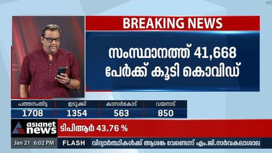 സംസ്ഥാനത്ത് ഇന്ന് 41,668 പേര്ക്ക് കൊവിഡ് സ്ഥിരീകരിച്ചു; ടിപിആര് 43.76%, തിരുവനന്തപുരത്ത് ഏഴായിരത്തിലേറെ രോഗികള്