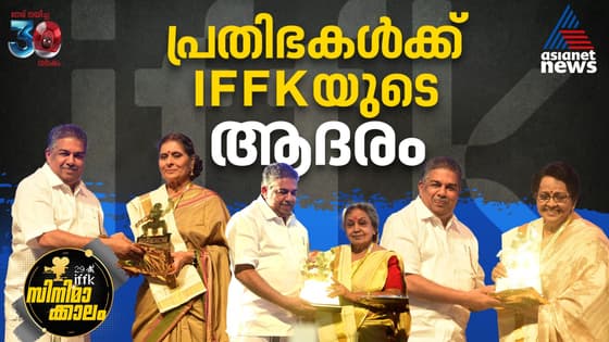 Published : Dec 16 2024, 07:05 PM IST| Updated : Dec 16 2024, 09:42 PM IST എണ്പതുകളില് മലയാള സിനിമയില് നിറഞ്ഞുനിന്ന വനിതാ താരങ്ങളെ ഐഎഫ്എഫ്കെ വേദിയില് മന്ത്രി സജി ചെറിയാൻ ആദരിക്കുന്നു.