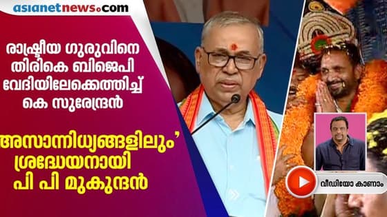ബിജെപിയുടെ സംസ്ഥാന അധ്യക്ഷനായി കെ സുരേന്ദ്രന് ചുമതലയേറ്റ ചടങ്ങില് പാര്ട്ടി നേതാക്കളുടെ അസാന്നിധ്യം ചര്ച്ചയായപ്പോള് ഏറെക്കാലമായി വിട്ടുനില്ക്കുന്ന മുതിര്ന്ന നേതാവ് പി പി മുകുന്ദന് എത്തിയത് ശ്രദ്ധേയമായി. സംസ്ഥാന ബിജെപിയുടെ ഏറ്റവും പ്രധാനപ്പെട്ട ചടങ്ങില് മുകുന്ദന് പങ്കെടുക്കുന്നത് ഏറെക്കാലത്തിന് ശേഷമാണ്. മുതിര്ന്ന നേതാവിനെ എത്തിക്കാന് മുന്കയ്യെടുത്തതും പുതിയ അധ്യക്ഷന് തന്നെ. ഏഷ്യാനെറ്റ് ന്യൂസ് പ്രതിനിധി കെ ജി കമലേഷ് തയ്യാറാക്കിയ പ്രത്യേക റിപ്പോര്ട്ട്.