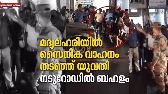 മദ്യപിച്ച് സൈനിക വാഹനം തടഞ്ഞ് യുവതിയുടെ അതിക്രമം; തടയാനെത്തിയവര്ക്ക് നേരെ അസഭ്യവര്ഷം, അറസ്റ്റ്, വീഡിയോ