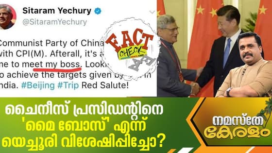 ചൈനീസ് പ്രസിഡന്റിനെ 'മൈ ബോസ്' എന്ന് സിപിഎം ജനറല് സെക്രട്ടറി സീതാറാം യെച്ചൂരി വിശേഷിപ്പിച്ചതായുള്ള ട്വീറ്റീന്റെ സ്ക്രീന്ഷോട്ടാണ് വ്യാപകമായി പ്രചരിക്കുന്നത്. യെച്ചൂരിയുടെ ഔദ്യോഗിക ട്വിറ്റര് ഹാന്ഡിലിന്റേതായി വ്യാജ ട്വീറ്റ് നിര്മ്മിച്ച് അതിന്റെ സ്ക്രീന്ഷോട്ട് ഉപയോഗിച്ചാണ് പ്രചാരണം. വസ്തുതയിത്.