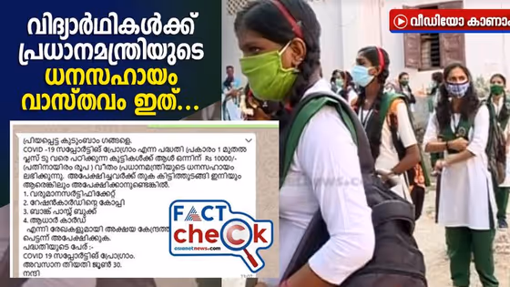 പ്ലസ് ടു വരെയുള്ള വിദ്യാര്ഥികള്ക്ക് 10000 രൂപ പ്രധാനമന്ത്രിയുടെ ധനസഹായം; സത്യമോ?