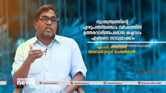 പരിസ്ഥിതി സൗഹൃദ ബിസിനസാണ് മലബാർ ഗ്രൂപ്പ് ലക്ഷ്യമിടുന്നതെന്ന് ചെയർമാൻ എം പി അഹമ്മദ്. ഇന്ത്യയുടെ പ്ലസ് പോയിന്റ് യുവത്വമാണെന്നും അതിനാൽ തന്നെ സാമൂഹ്യപ്രതിബദ്ധത എന്ത് സംരംഭത്തിന്റെയും അടിസ്ഥാനമാകണമെന്നും അദ്ദേഹം എൻസിസി കേഡറ്റുകളോട് പറഞ്ഞു. സ്വാതന്ത്ര്യത്തിന്റെ 75ാം വർഷത്തിൽ ഏഷ്യാനെറ്റ് ന്യൂസും എൻസിസിയും ചേർന്ന് സംഘടിപ്പിച്ച വജ്രജയന്തി യാത്രയുടെ ഭാഗമായാണ് കേഡറ്റുകൾ കോഴിക്കോടുള്ള മലബാർ ഗ്രൂപ്പ് ആസ്ഥാനം സന്ദർശിച്ചത്.