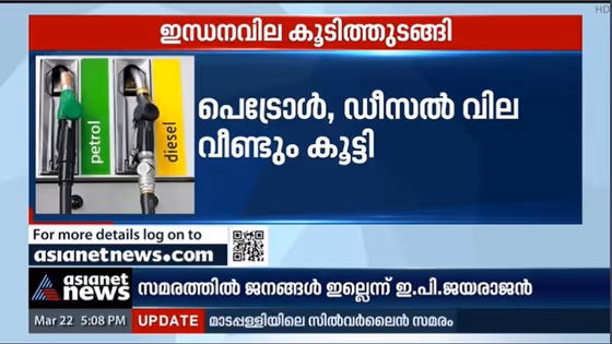 ഇരട്ട പ്രഹരമായി രാജ്യത്ത് പെട്രോൾ, ഡീസൽ വിലയും പാചകവാതക വിലയും കൂട്ടി. 138 ദിവസത്തിന് ശേഷമാണ് ഇന്ധനവില വർദ്ധിപ്പിക്കുന്നത്. ഇന്ധനവില വർദ്ധനവിൽ ജനം പ്രതികരിക്കുന്നു..