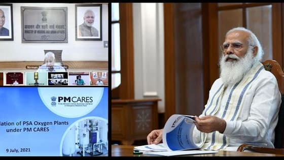 മൂന്നാം തരംഗത്തിന് മുന്നോടിയായി രാജ്യത്തെ ഓക്സിജന് വിതരണവും അതിലെ അപാകതകളും വിലയിരുത്താന് പ്രധാനമന്ത്രി നരേന്ദ്രമോദി വിളിച്ച ഉന്നത തല യോഗത്തിൽനിന്നുള്ള ദൃശ്യങ്ങൾ