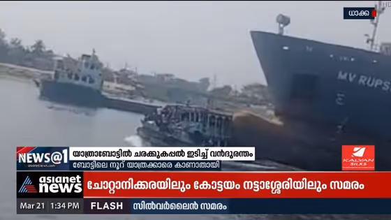 ധാക്കയിൽ യാത്രബോട്ടില് ചരക്ക് കപ്പല് ഇടിച്ച് അപകടം 100 പേരെ കാണാതായി