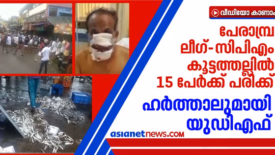പേരാമ്പ്ര മത്സ്യ മാര്ക്കറ്റില് വില്പ്പനയെച്ചൊല്ലി സിപിഎമ്മും മുസ്ലീം ലീഗും തമ്മിലുണ്ടായ കൂട്ടത്തല്ലില് 15 പേര്ക്ക് പരിക്കേറ്റു. സംഭവത്തില് പ്രതിഷേധിച്ച് പേരാമ്പ്ര ടൗണില് യുഡിഎഫ് ഹര്ത്താല് നടത്തുകയാണ്.