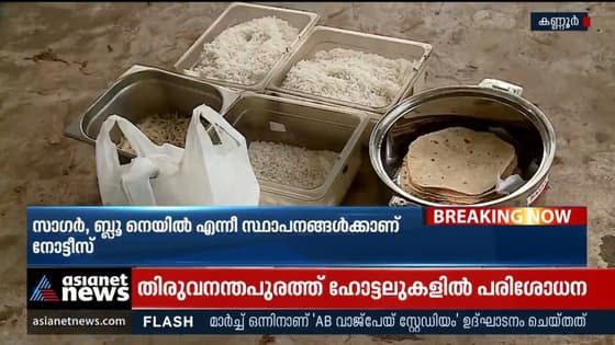 കണ്ണൂരിൽ പഴകിയ ഭക്ഷണ സാധനങ്ങൾ കണ്ടെത്തിയ ഹോട്ടലുകൾക്ക് നോട്ടീസ്