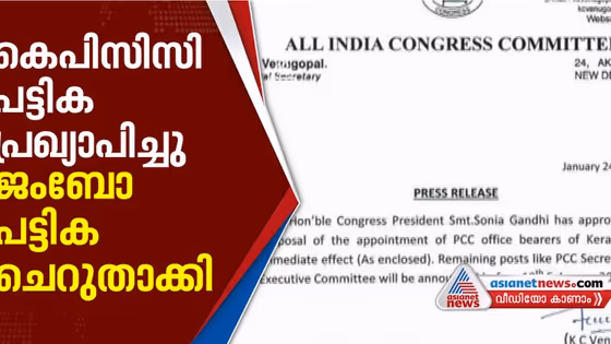 12 വൈസ് പ്രസിഡന്റുമാരും 34 ജനറല് സെക്രട്ടറിമാരുമുണ്ട് പട്ടികയില്. ആകെ പട്ടികയില് 47 ആംഗങ്ങളാണ് ഉള്ളത്