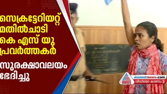 പൊലീസ്, സെക്യൂരിറ്റി സുരക്ഷാവലയം ഭേദിച്ച് സെക്രട്ടേറിയറ്റ് മതില്ചാടി മുഖ്യമന്ത്രിയുടെ ഓഫീസിന് താഴെ വരെയെത്തി കെഎസ്യു പ്രവര്ത്തകരുടെ പ്രതിഷേധം. മുഖ്യമന്ത്രിയെ കാണണമെന്നാവശ്യപ്പെട്ടാണ് വനിതാ പ്രവര്ത്തകയടക്കം മുഖ്യമന്ത്രിയുടെ ഓഫീസ് സ്ഥിതി ചെയ്യുന്ന കെട്ടിടത്തിന് മുന്നിലെത്തിയത്.