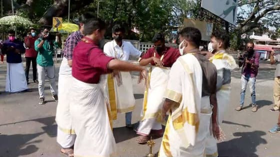 സെറ്റും മുണ്ടും ഉടുത്ത് തൃശൂര് കളക്ട്രേറ്റിന് മുന്നില് കെഎസ്യു തിരുവാതിര!
