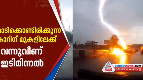 നടുറോഡിൽ ഓടിക്കൊണ്ടിരുന്ന കാറിന് ഇടിമിന്നലേറ്റു!